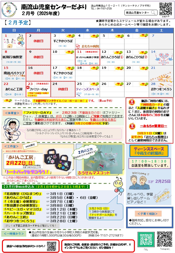 2月の児童センターだよりが発行されました。