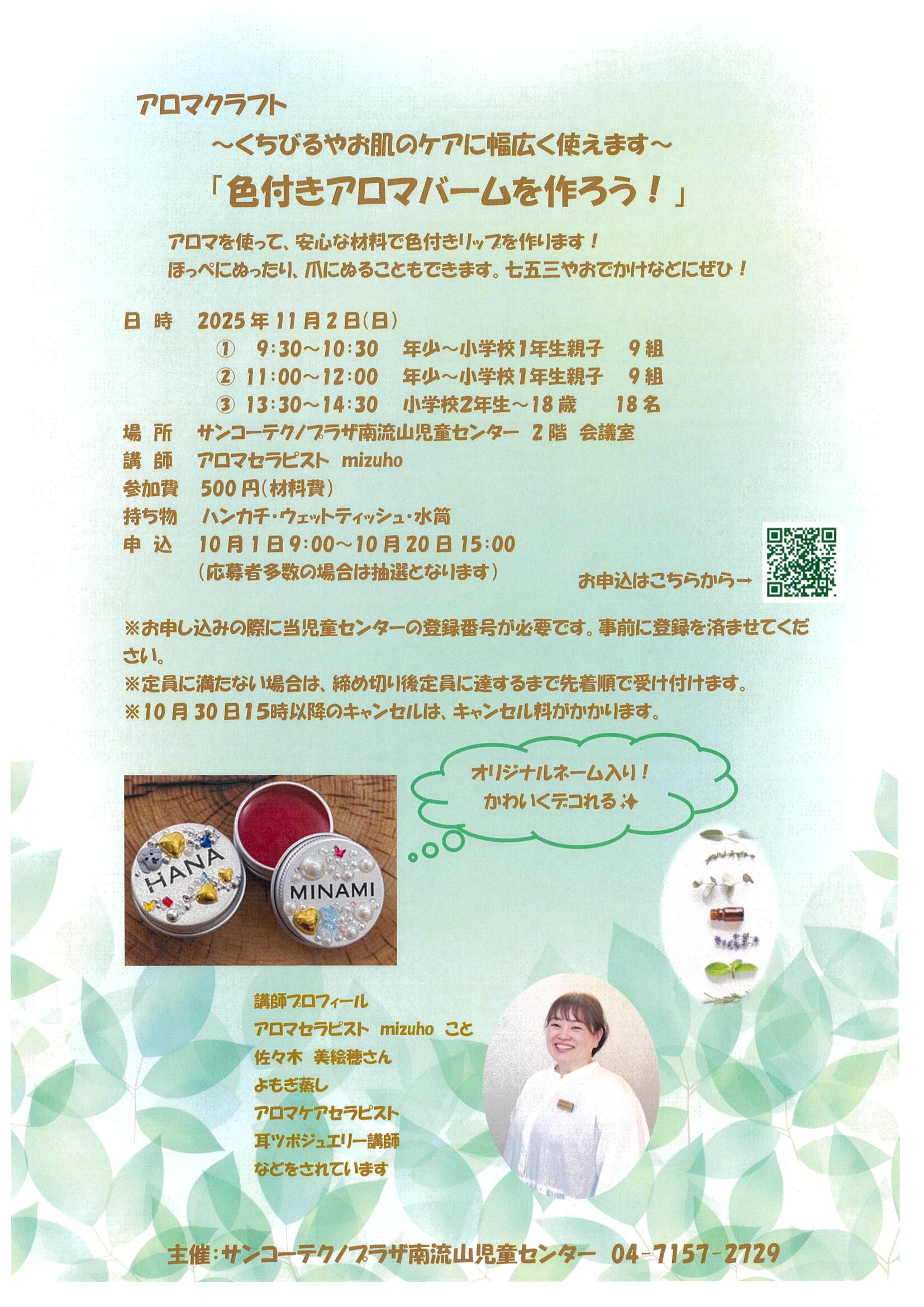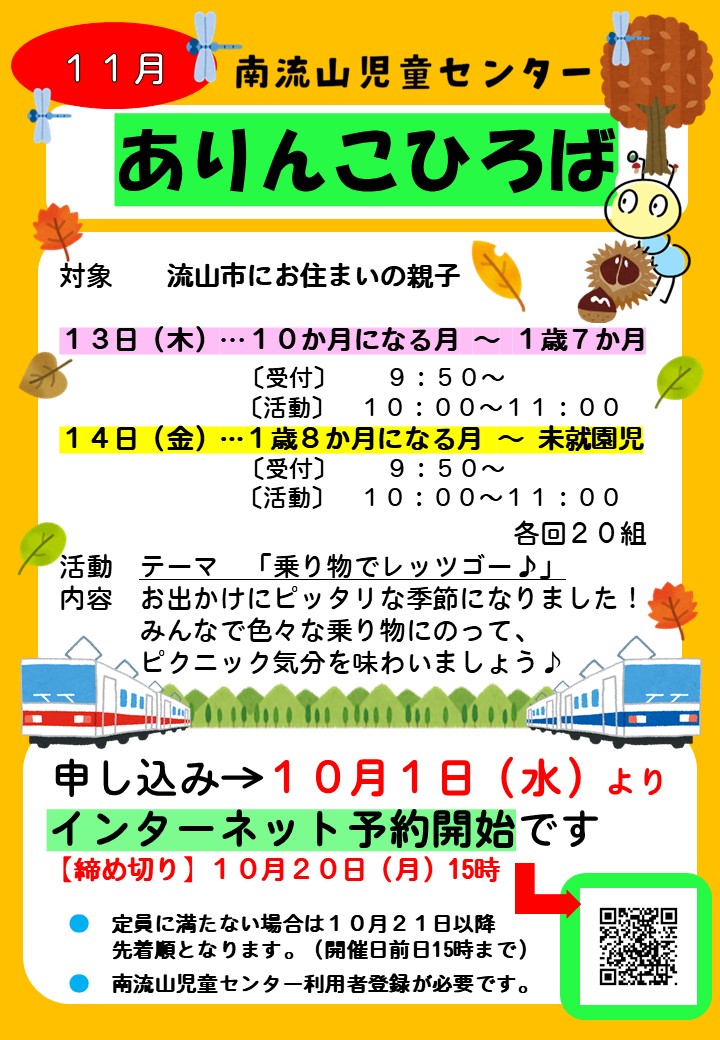 「すこやかひろば」「ありんこひろば」は「講座参加申込(流山市在住者対象)」のページをご覧下さい。