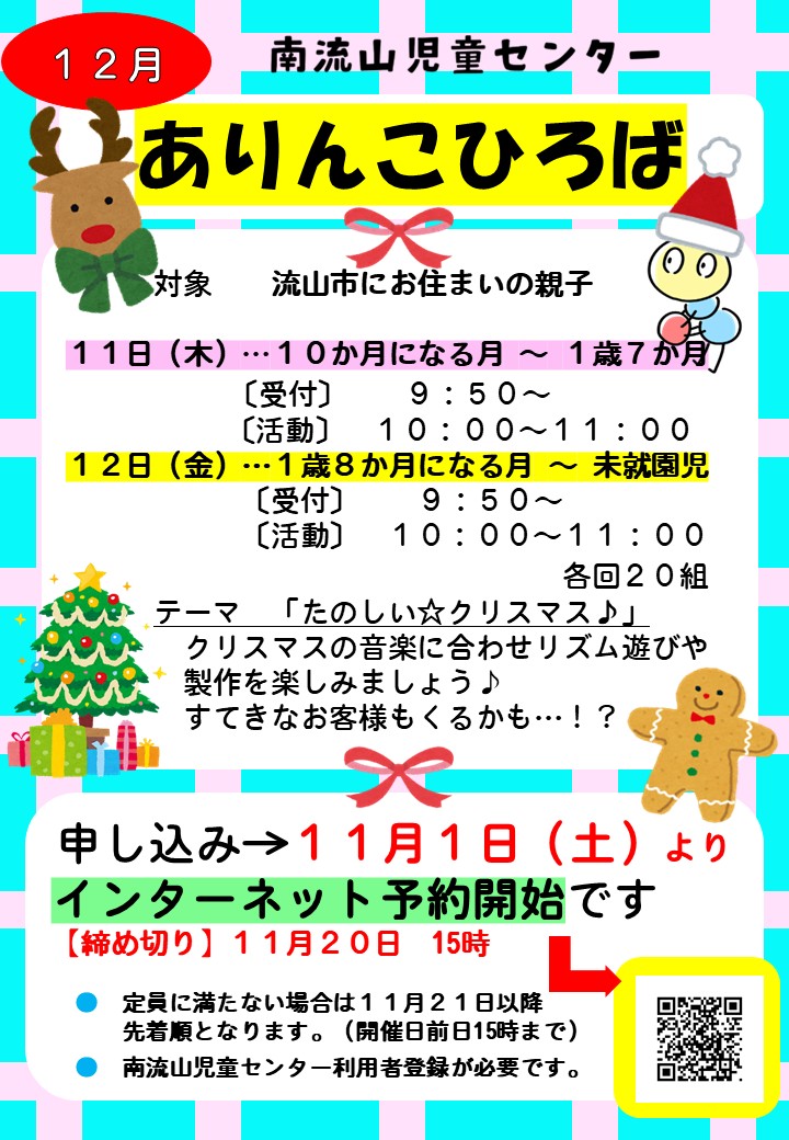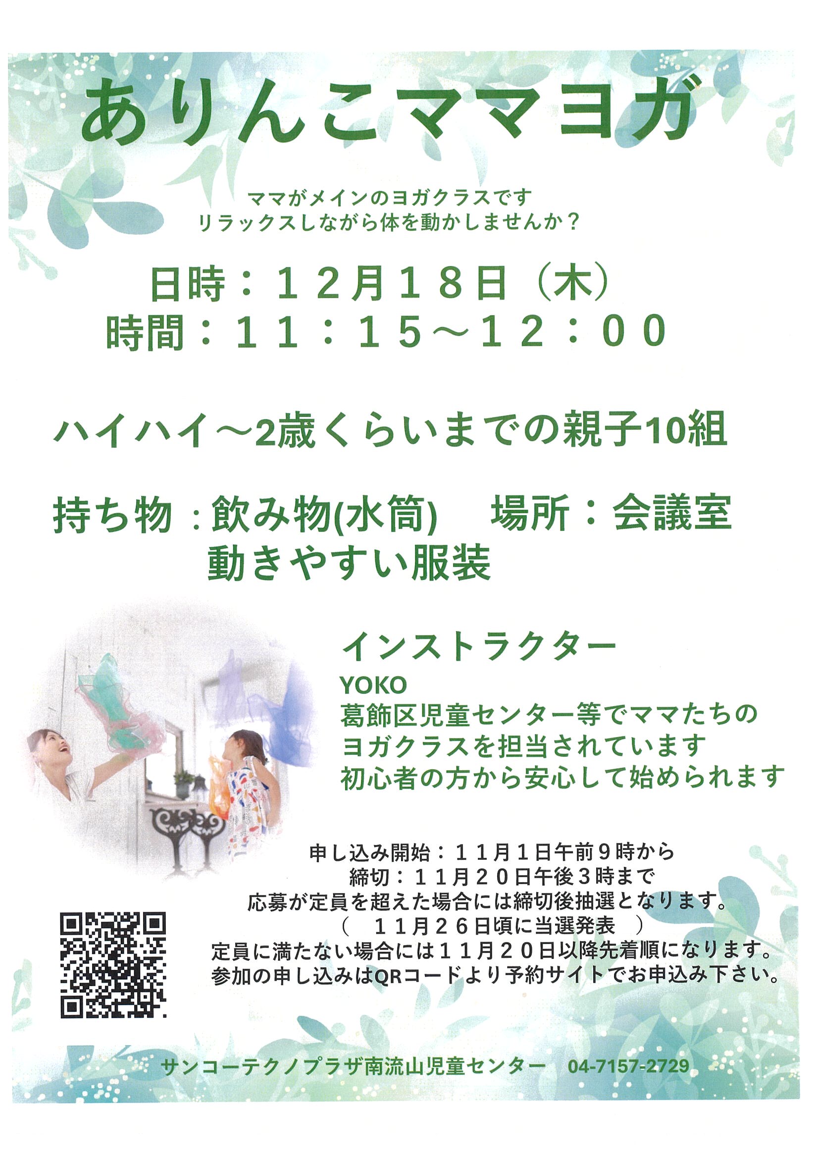 「ありんこひろば」は「講座参加申込(流山市在住者対象)」のページをご覧下さい。