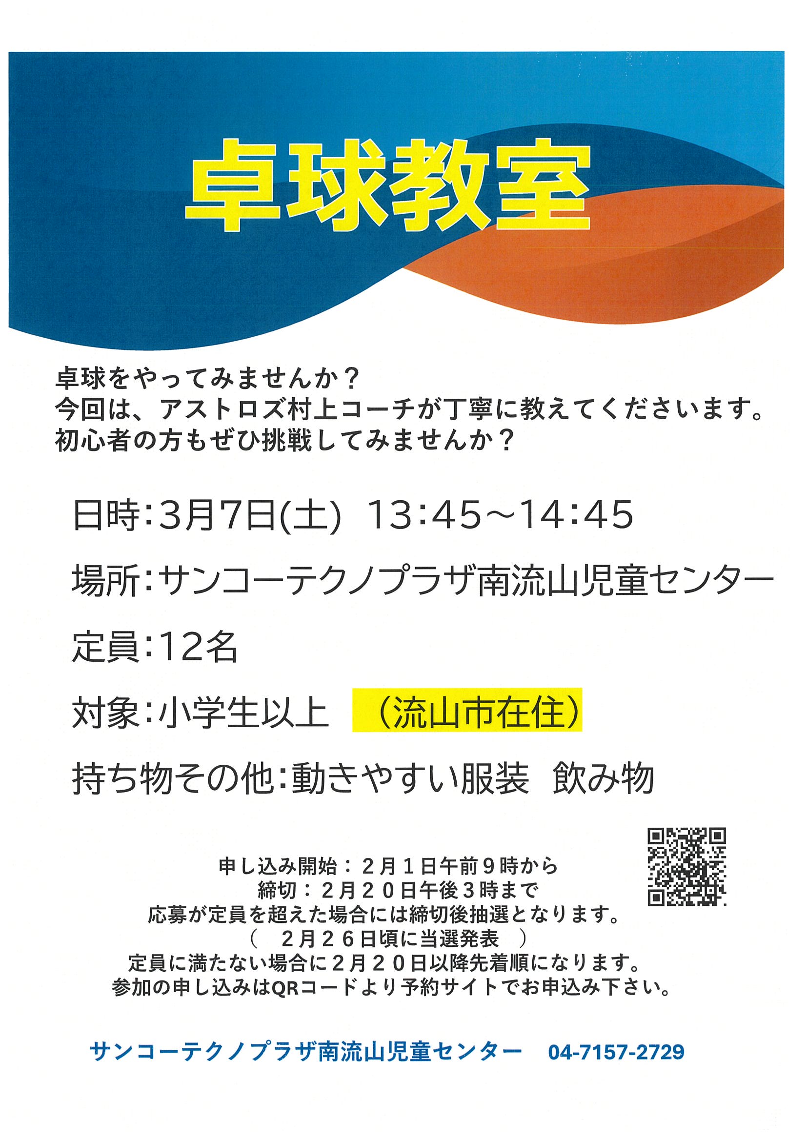 ・定員に満たない場合は、2月21日以降から先着順となります。
