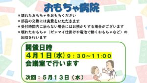 4月1日『おもちゃ病院』が開院されます。