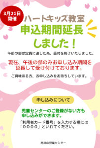 3月21日【ハートキッズ教室】申し込み期間延長のお知らせ
